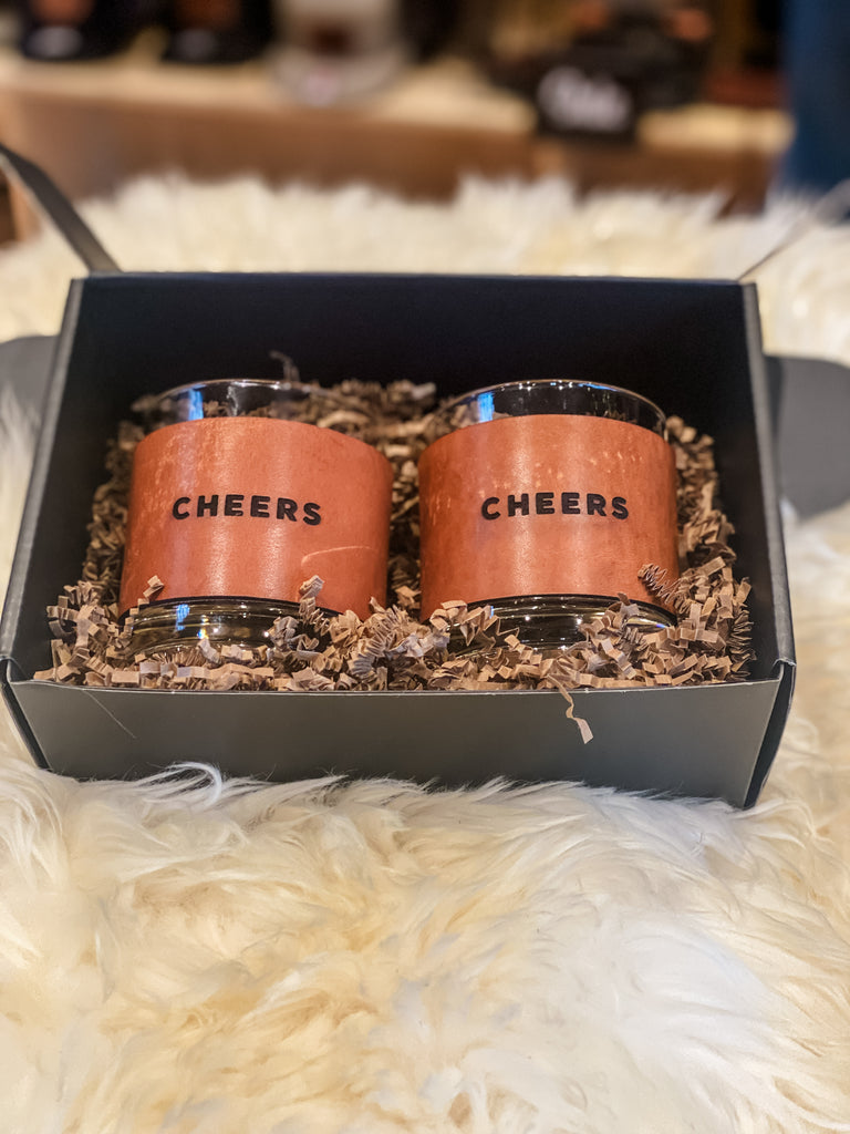 Who can resist the smell of leather + whiskey? The perfect gift for the guy who has everything! These beautiful whiskey tumblers are weighted for perfect balance and durability. They come in a beautifully packaged gift box ready to gift as is, no wrapping necessary!