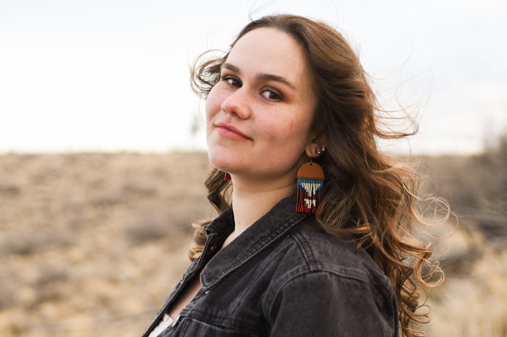 Beautifully coordinated with the Big Thunder Pendleton design from our Timberline Slouch and our Timberline Hip Purses, these are the Big Thunder Leather+Beads earrings. These are accented with the Palomino leather and a cascade of colorful beads to give them the perfect amount of movement in the fringe. These are our largest size so if you're looking for that 'wow factor' you've found your match!